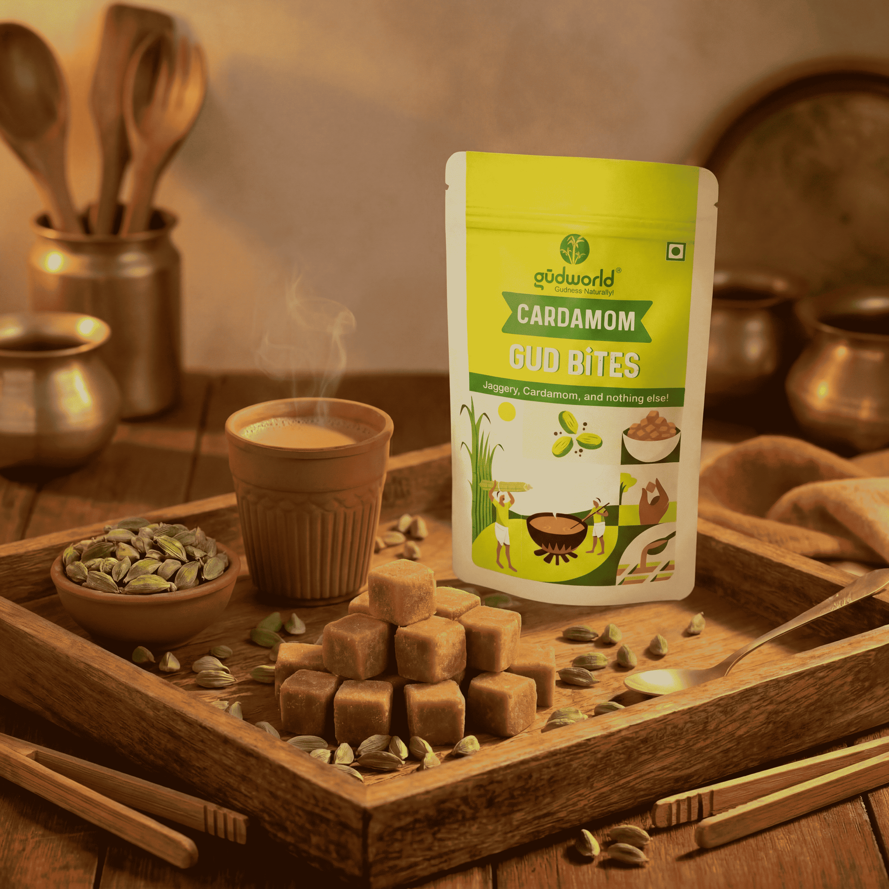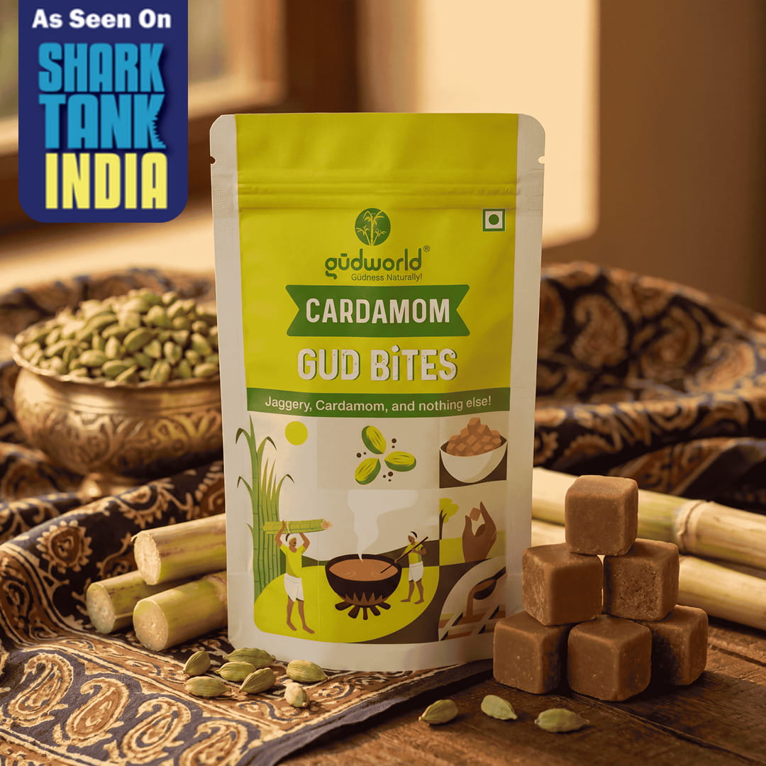 • You can add Gudworld's Cardamom Gud Bites to your tea to enjoy a cup of delicious Cardamom Chai!