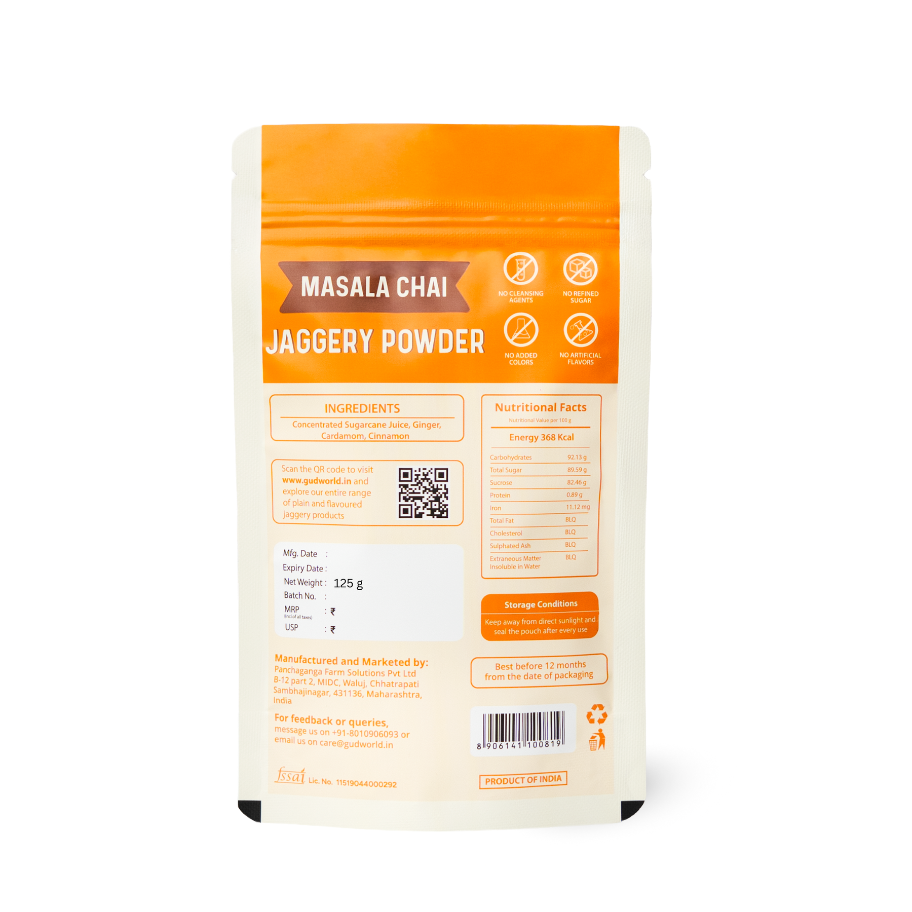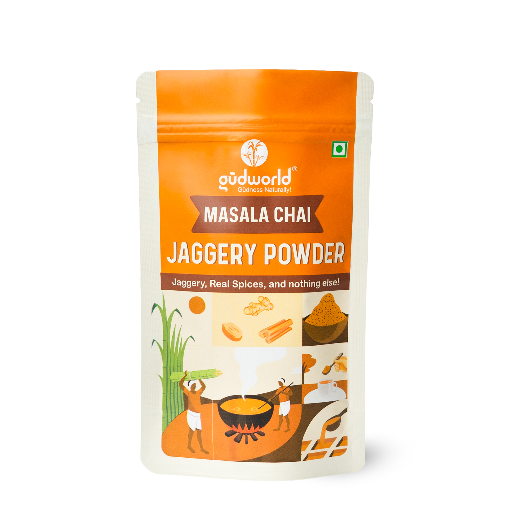 • Gudworld's Masala Chai Jaggery Powder is a superfood sweetener in a granulated free-flowing form made from organically grown Sugarcane and Spices by following a chemical-free process that makes it 100% Natural.